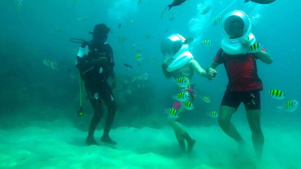 Walk on the ocean floor with a special helmet and witness marine life up close.